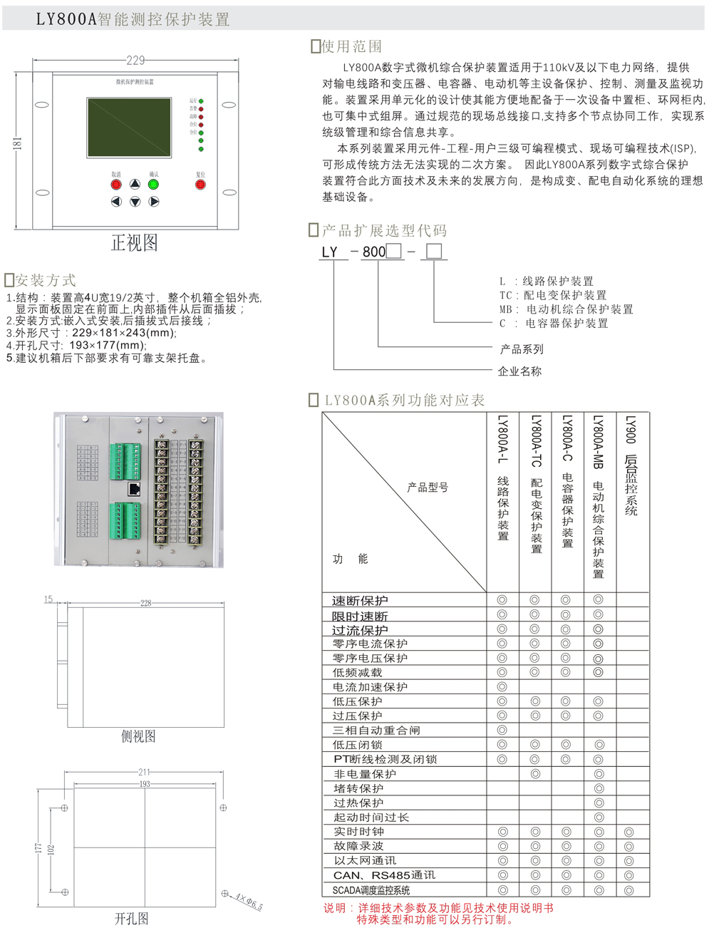 產(chǎn)品總匯>LY800A-L 微機線路保護測控裝置