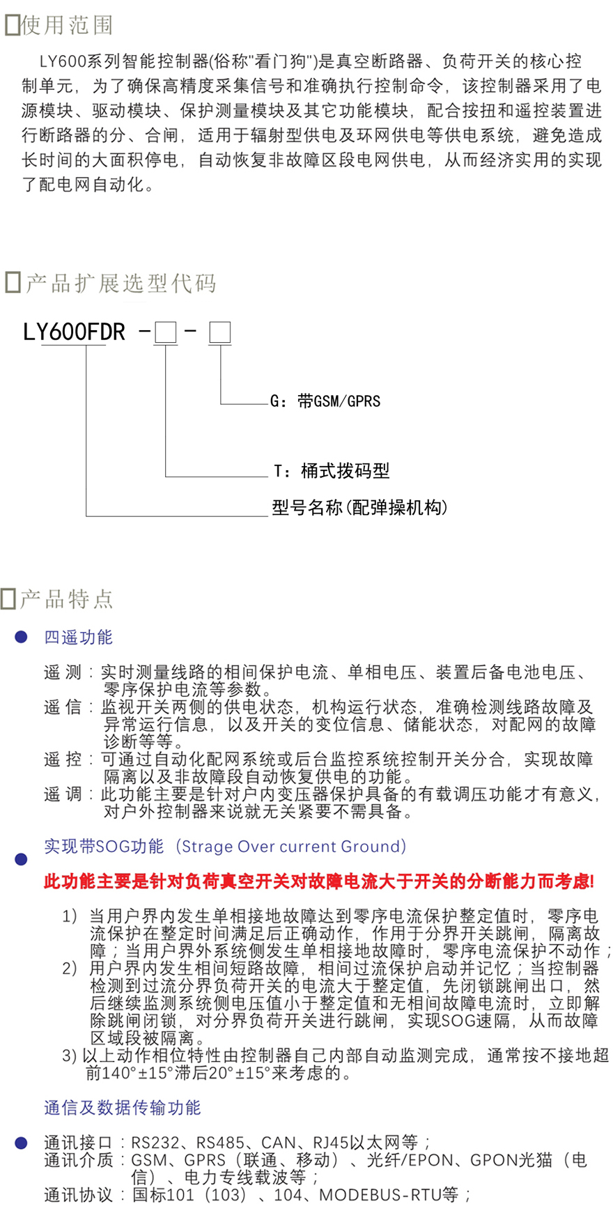 LY600FDR-T 配電網(wǎng)智能控制器(桶式撥碼型)